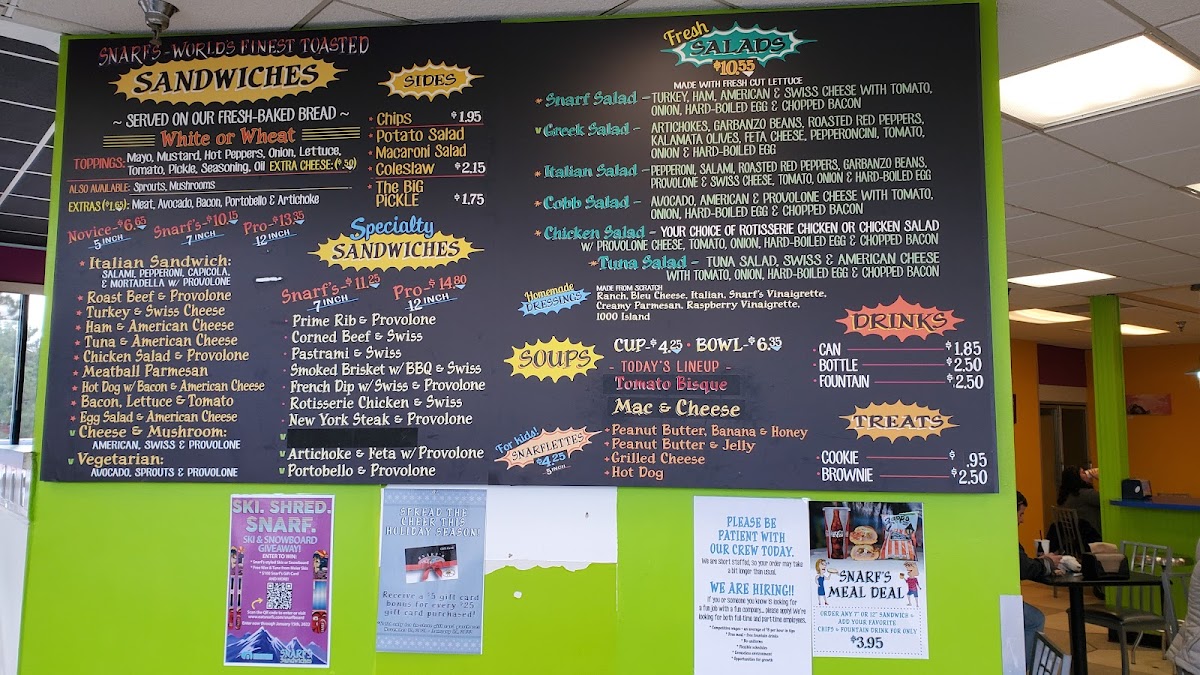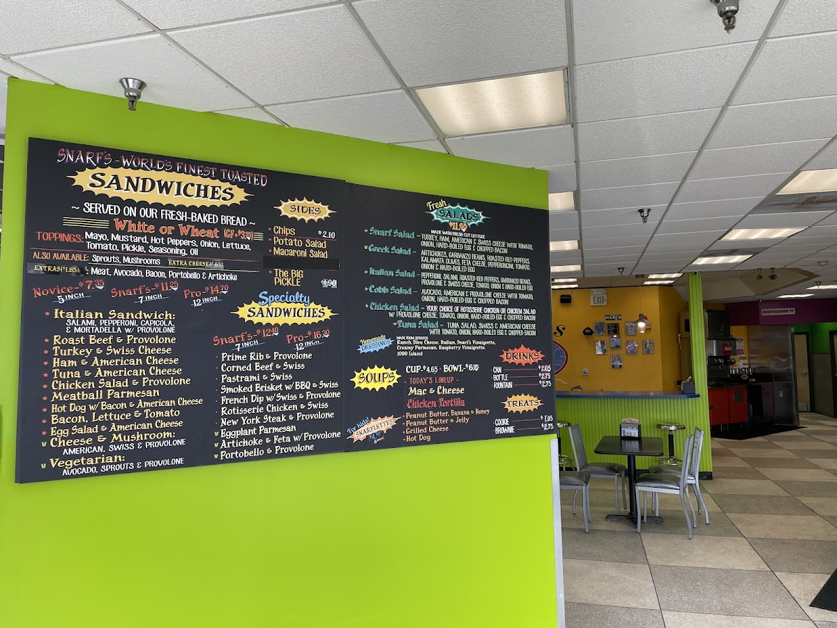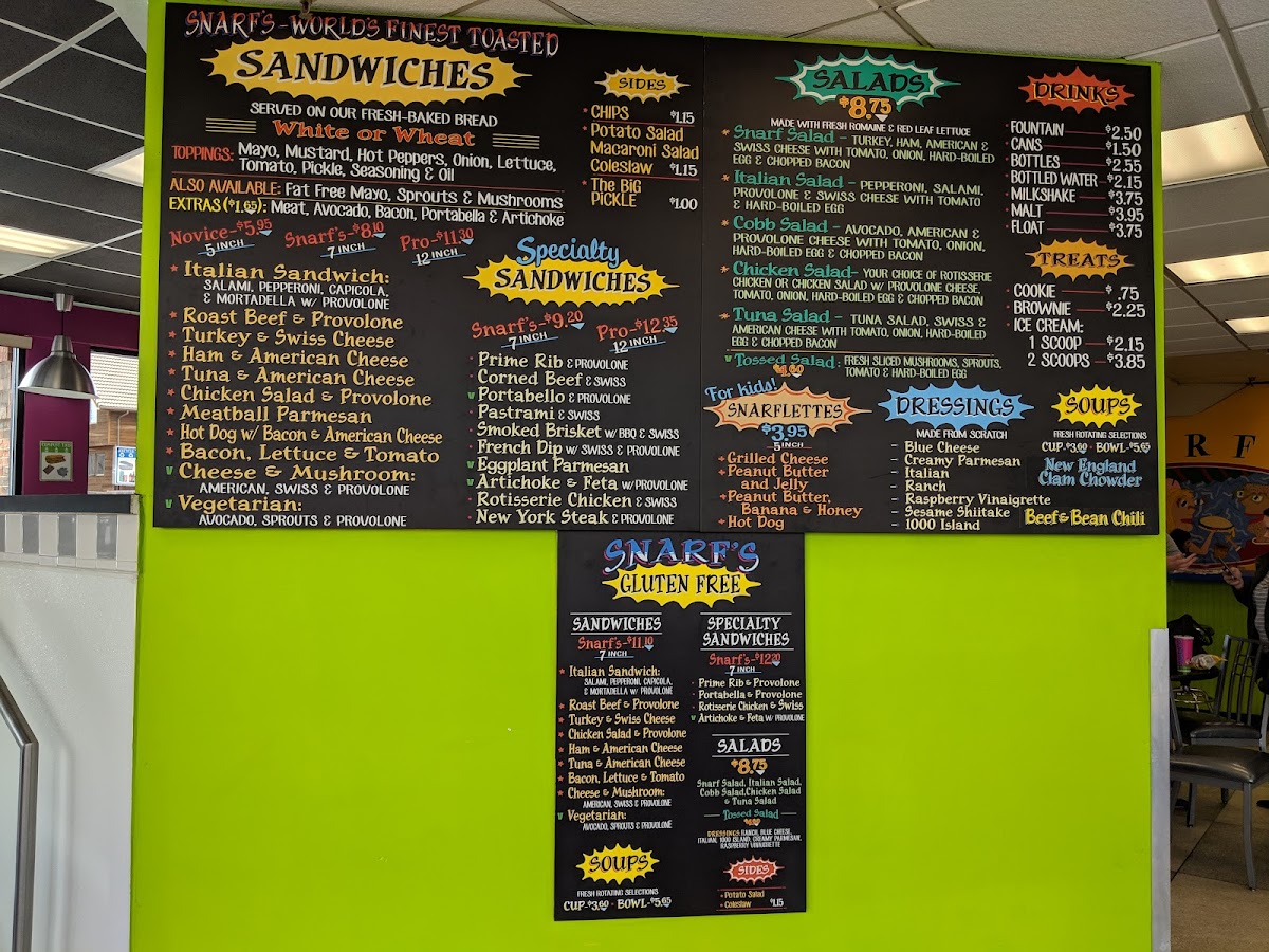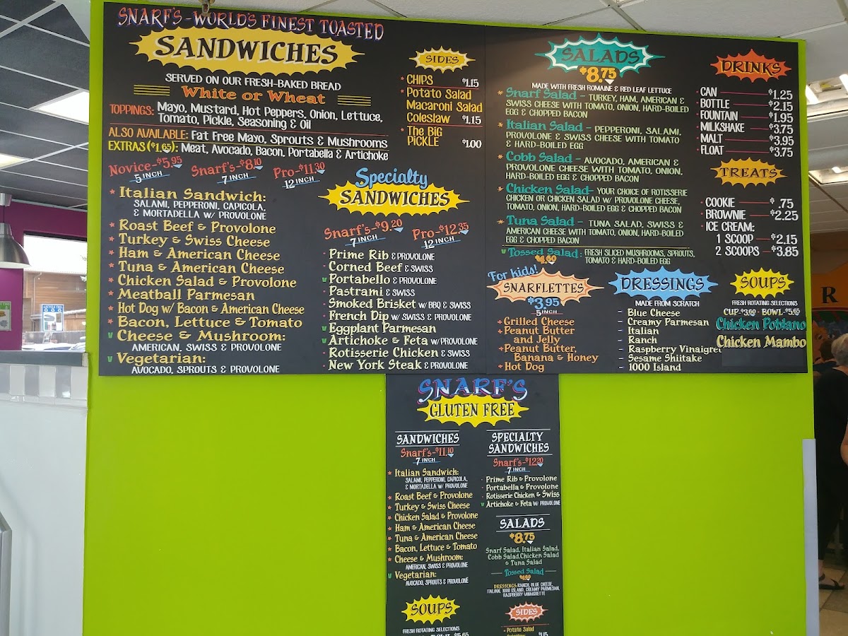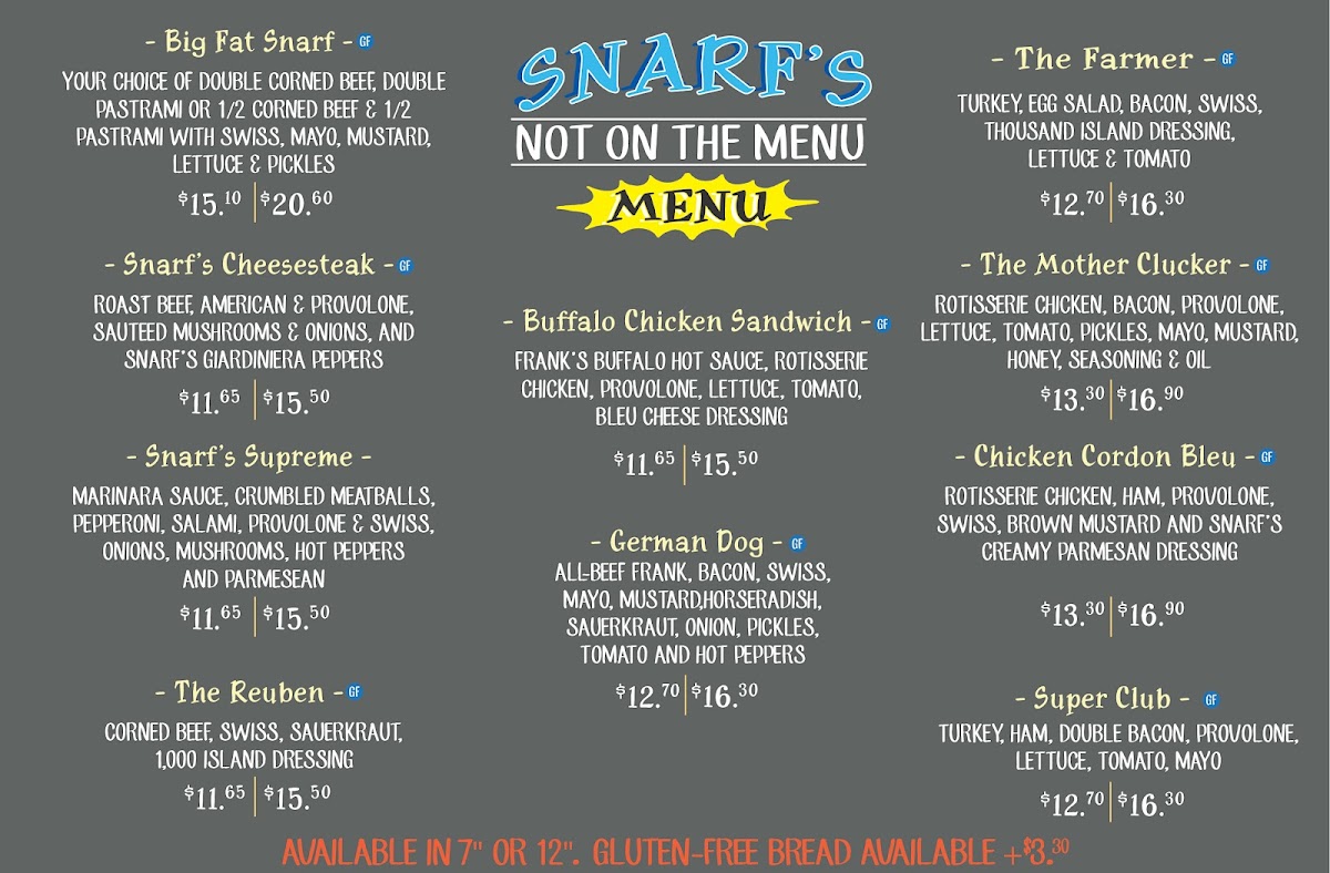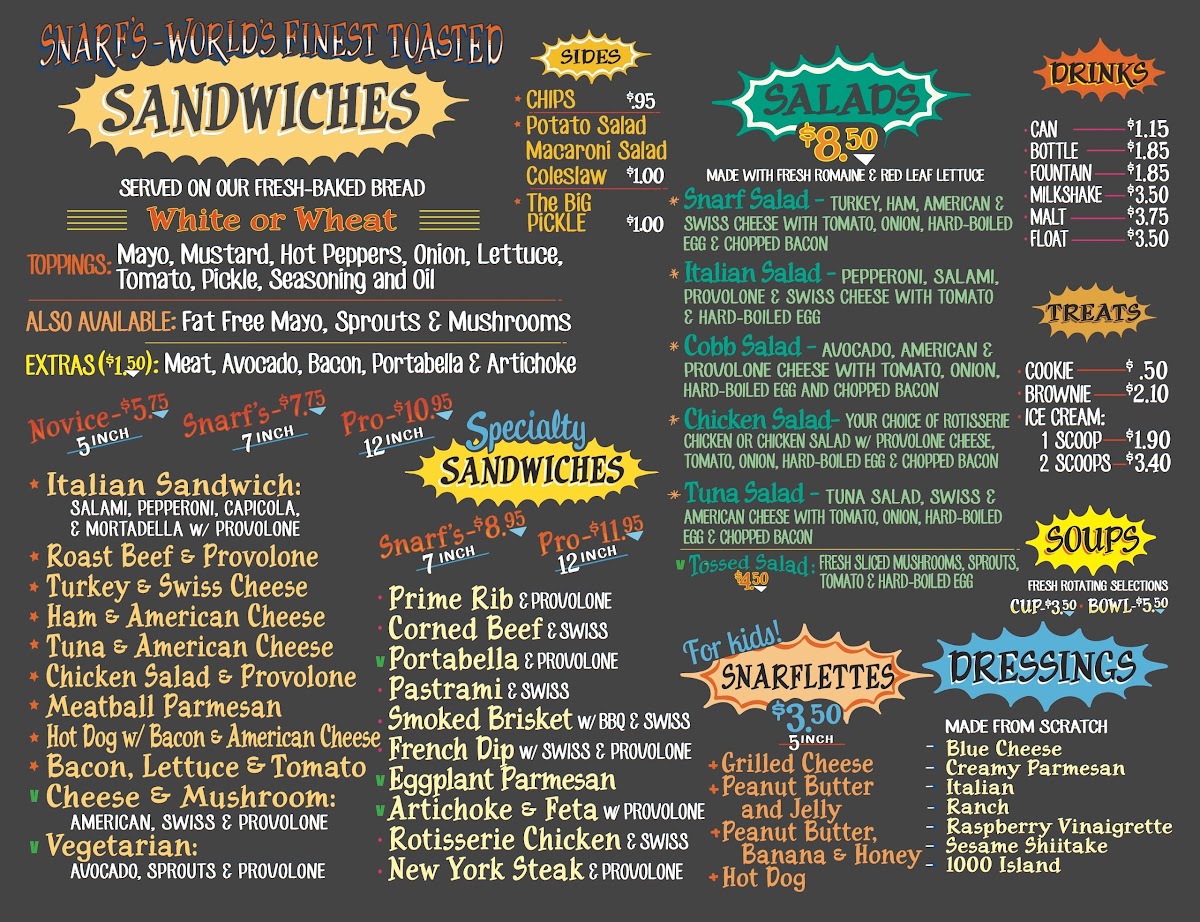 Snarf's Sandwiches Menu